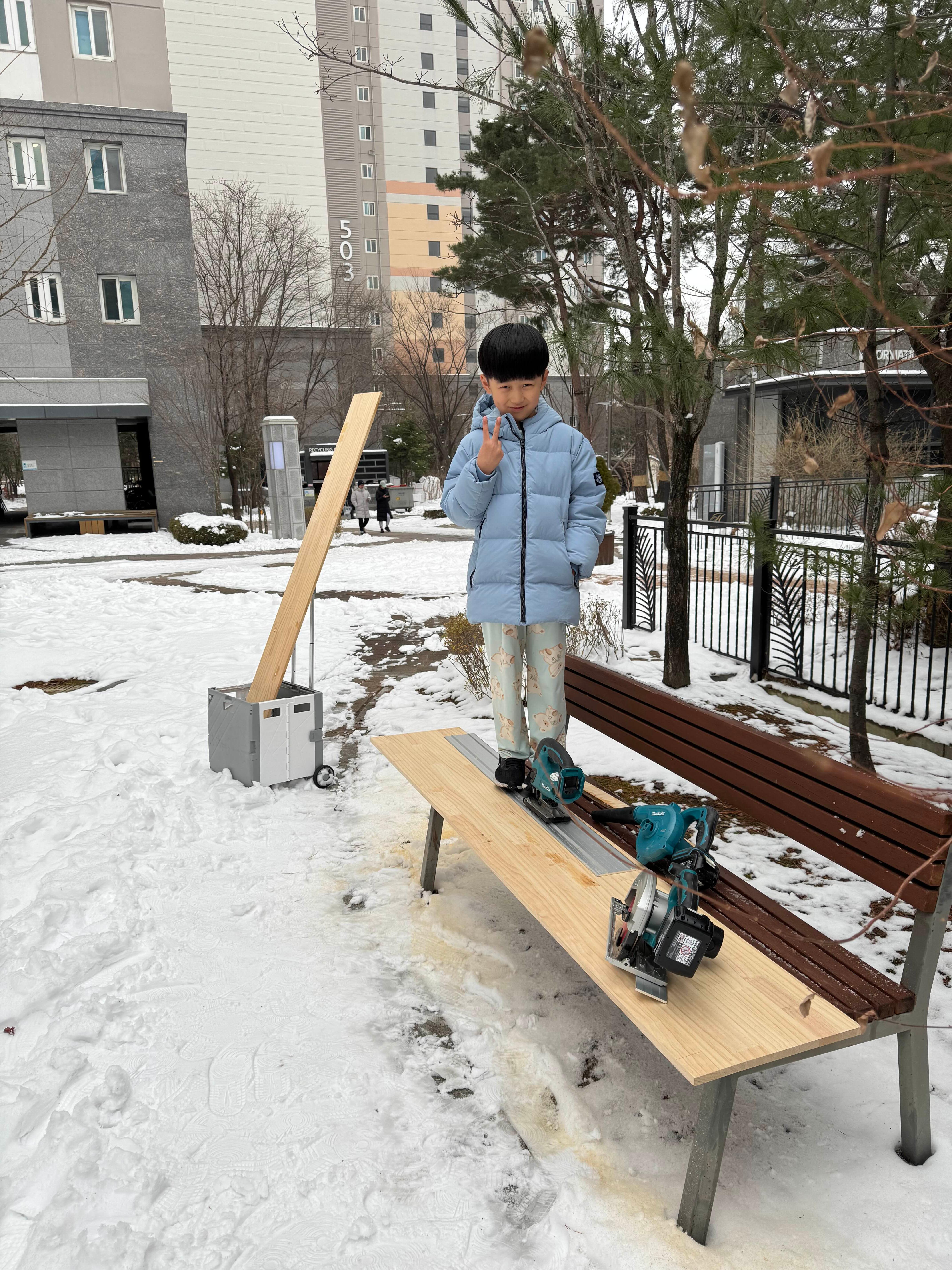 앞쪽 테이블이 필요하다는 요청이있어 부랴부랴 둘째를 데리고 작업합니다